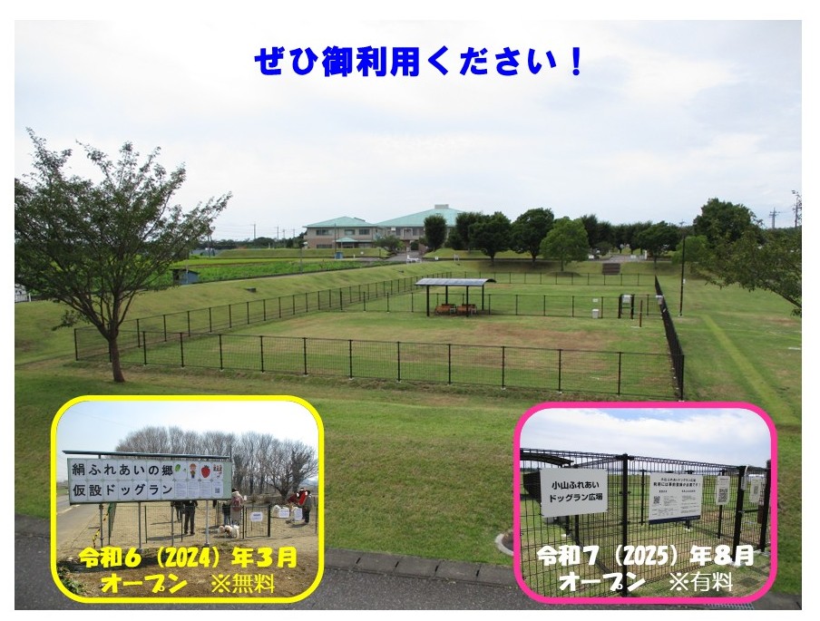 令和7(2025)年8月に広域クリーンセンター東側の調整池に「小山ふれあいドッグラン広場」開設となりました。