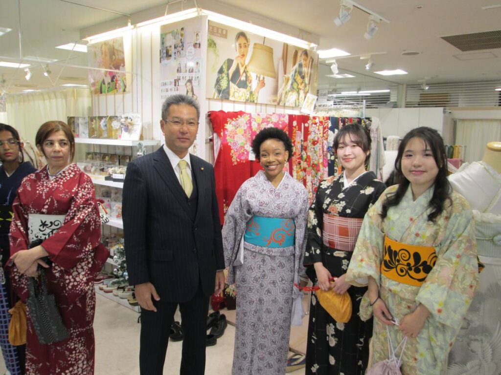 私はVAL1階まで同行して失礼しましたが、店内でも御一行に注目している方々はいたので、着物の日や多文化共生のPRになっていたと思います。